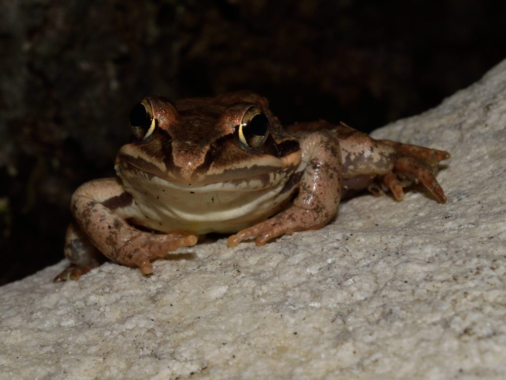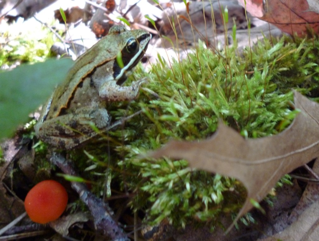 Other frogs, like the wood frog and many tree frogs, will actually freeze almost solid during the winter (1,2,3,4)! Usually the frogs burrow themselves under some leaves and sticks on the forest floor to stay out of sight while they are frozen and unable to escape anything (1). I have never found a frozen wood frog but I’ve seen pictures and YouTube videos of them and they look like little frog shaped cold rocks.
